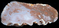 Agates from Lunan are highly varied, although if you visit briefly on a single occasion in average circumstances, you will likely only find many blue-grey onyx agates which predominate in the area. Occasionally sardonyx is encountered as well, and more often there is the familiar sight of fortification patterns above the level banding. Sometimes these are also in colour, but it takes patience and perseverance to accumulate any exceptional examples.